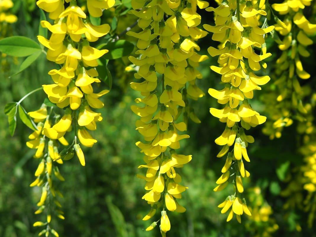- Цветы: ярко-желтые, собраны в кисти