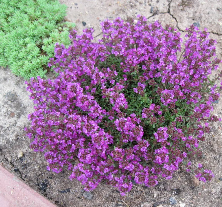 Тимьян ползучий Колхида – это многолетнее травянистое растение, которое станет настоящим украшением вашего сада. Его густые, стелющиеся побеги образуют плотный ковер, покрытый мелкими ароматными листьями и нежными розово-фиолетовыми цветками. Этот сорт тимьяна отличается высокой устойчивостью к засухе и неприхотливостью в уходе, что делает его идеальным выбором для альпийских горок, рокариев и бордюров.